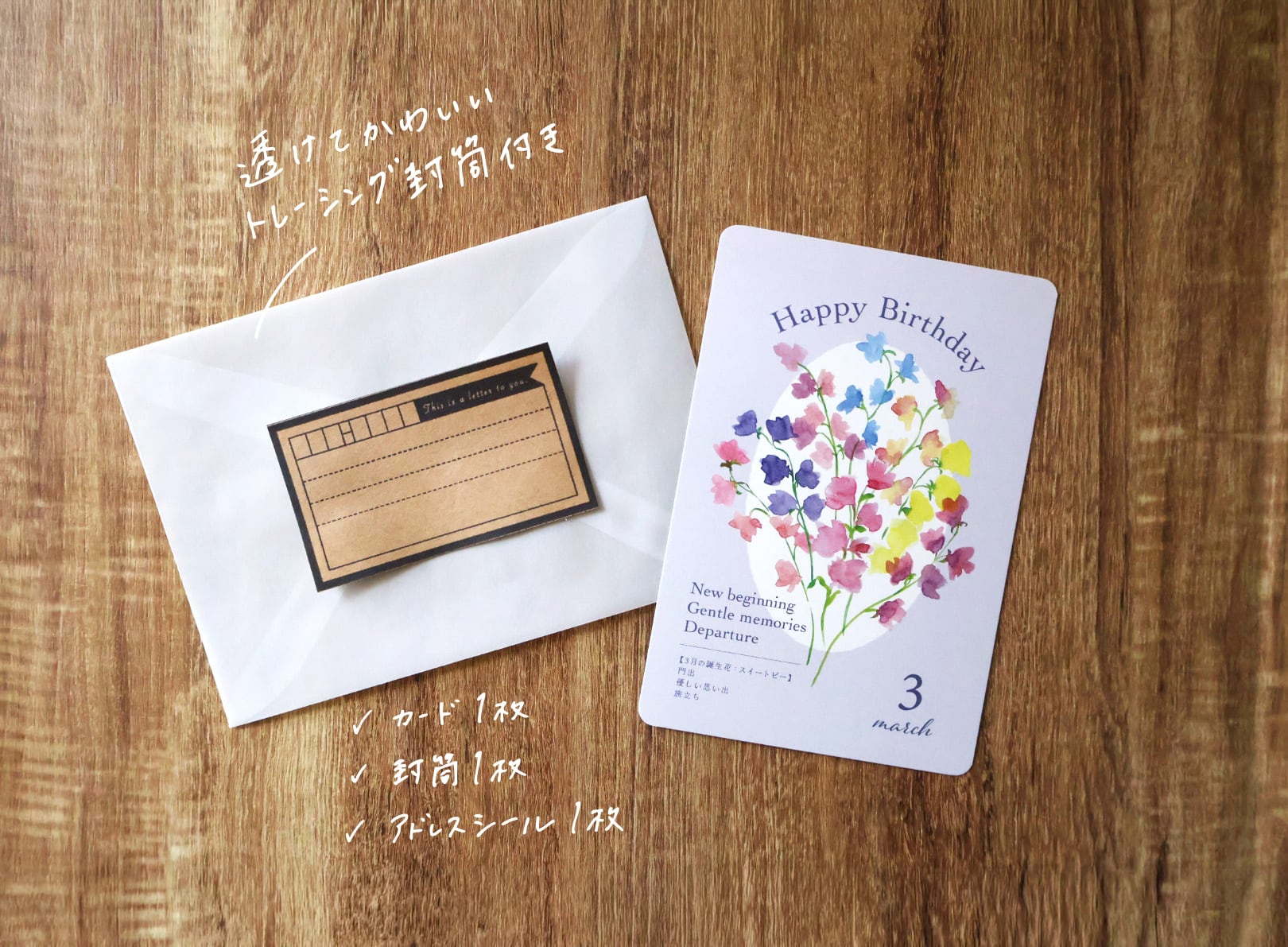 <内容> カード1枚入+封筒+アドレスシール