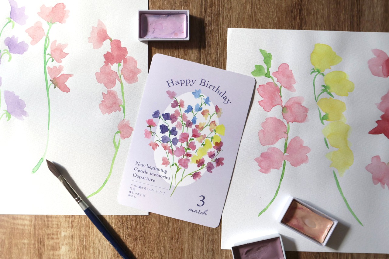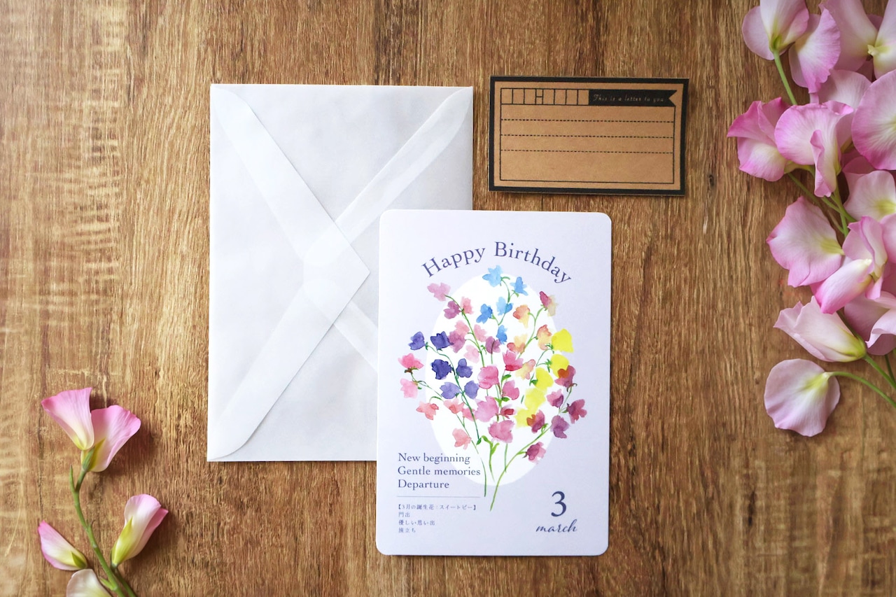 3月スイートピー*花言葉のバースデーカード